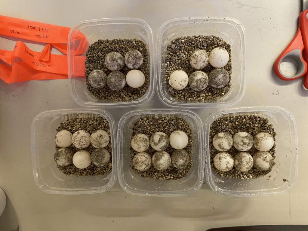 Once a nest is found, the eggs are carefully dug up and placed in containers with a suitable substrate, such as vermiculite. Vermiculite helps regulate moisture and temperature to create an ideal incubation environment for the eggs. Back at the lab, the eggs are placed into the incubators.
