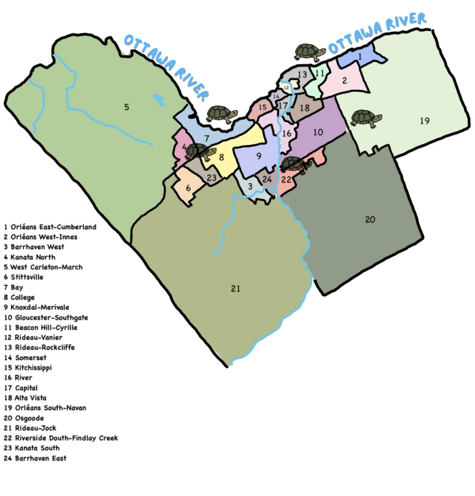 Turtle’s are all around Ottawa. Here is a map that depicts where turtles can be found.
